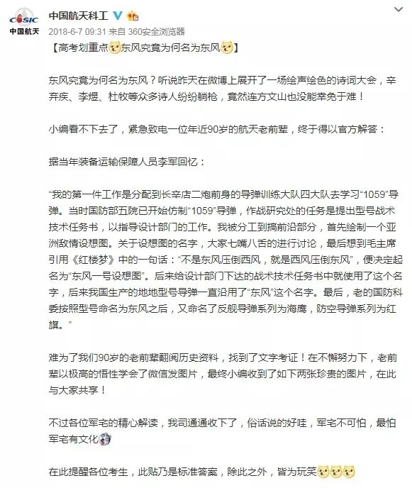 东风究竟为何为东风?中国航天科工官方微博曾做过解释——