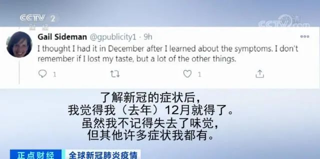 有美国网友说,“了解新冠的症状后,我觉得我去年12月就得了。虽然我不记得失去了味觉,但其他许多症状我都有。”