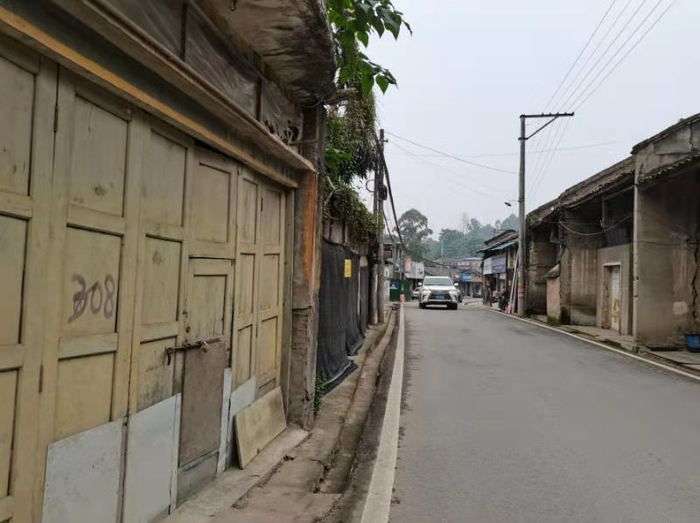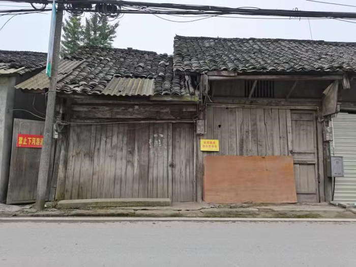 从彭山区坐车来到江口,路旁房地产打出的广告扑面而来。进入古镇,沿路排开的老房子映入眼帘。这些房子大多是木制房子,上了年头。有的房顶塌了,有的墙倒了。房子上贴着“危房请勿靠近”的字样,有的屋顶上长满了几十厘米高的草,有的门前台阶上爬满了青苔。