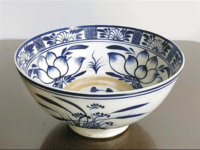 一般的老碗,指那种青花粗瓷、碗底有托的巨大的碗。为何做得那么大?还要一次盛个够?