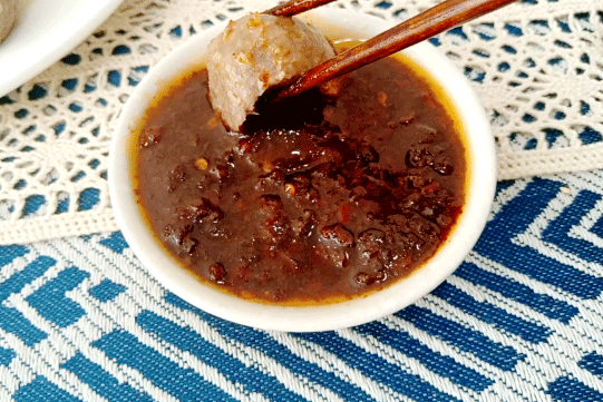 在浓郁的牛骨锅汤底衬托下,牛肉丸的肉味不但不会稀释,反而使牛肉丸更具浓郁的牛肉味,再配上沙茶酱作酱碟吃,啧啧~真是太棒了!