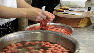 屠宰后的牛肉,肉质逐渐产生乳酸,甚至变硬,所以一颗新鲜、多汁的牛肉丸,从取肉到捶打成丸的时间仅有2-3小时。