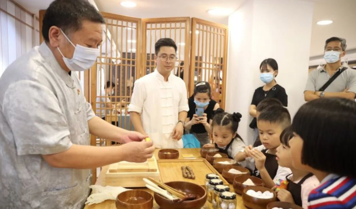 重返旧址的陈李济,把“好玩儿”的东西带到了消费者眼前:非遗文化工作室陈列着药臼、研船、戥称、搓丸板、药包等多种传统中药制作器具,消费者可以用这些工具制作中药香囊、压花等。工作室开设的非遗文化体验课、制作陈皮等活动都能让人们更为直观地感受到中医药传统文化的魅力,这些形式深受年轻人喜爱。试运营首日,直播在线观看人数就达近51万人次。