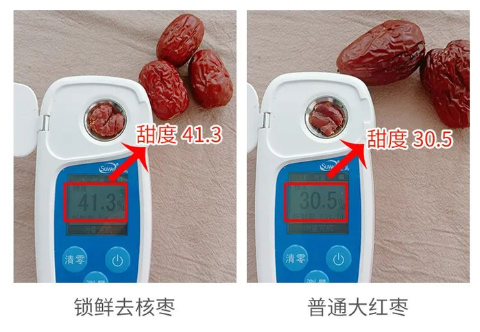 自然成熟的红枣,检测显示甜度达到了40度,比做蔗糖的甘蔗还要高两倍,更别说其他的大红枣了!