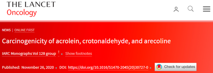 11月26日,世界卫生组织下属国际癌症研究机构(IARC)在《柳叶刀-肿瘤学》发表了对槟榔主要活性成分——槟榔碱(arecoline)致癌性的主要评估结论。基于有力的机制研究证据,槟榔碱被定为2B类致癌物。