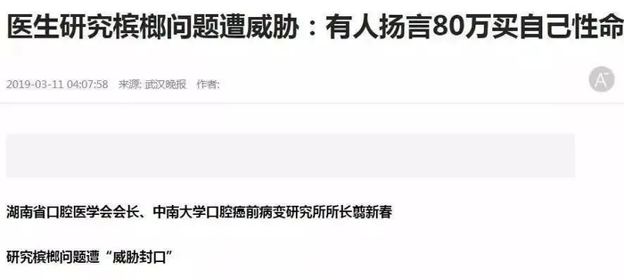 此前,央视新闻频道《新闻30分》曾报道槟榔的强致癌性。