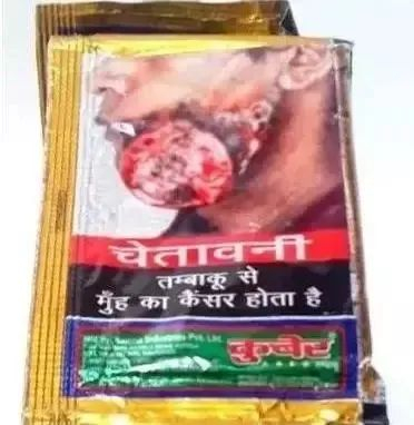 另一个槟榔消费大国印度,政府也要求槟榔果外包装要添加口腔癌图片,起到警示作用。