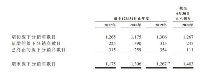 值得注意的是,曾一度退出大卖场渠道的蓝月亮近三年陆续重建其线下渠道。招股书显示,2017年、2018年及2019年以及今年上半年,该公司分别新增了225家、390家、315家及247家线下分销商。