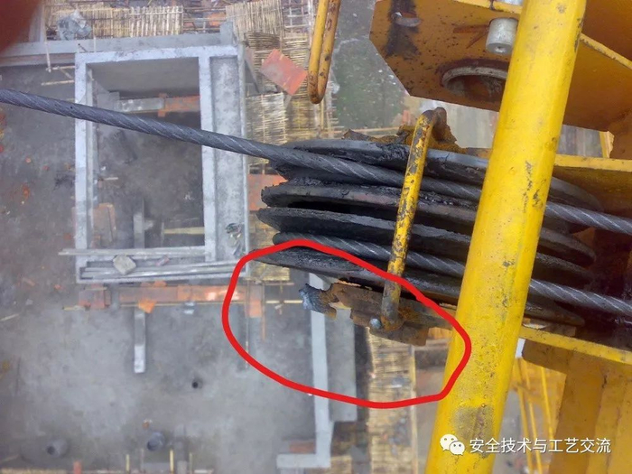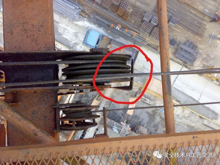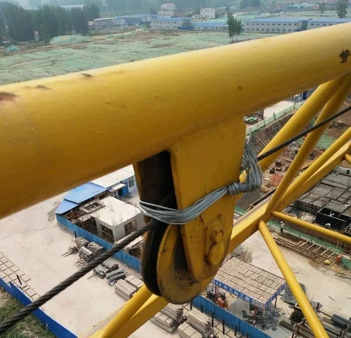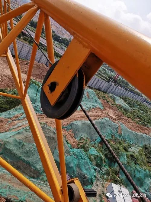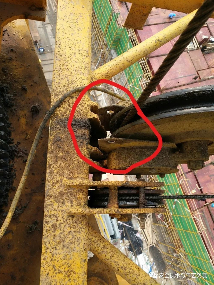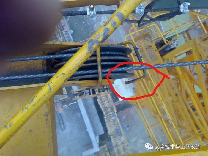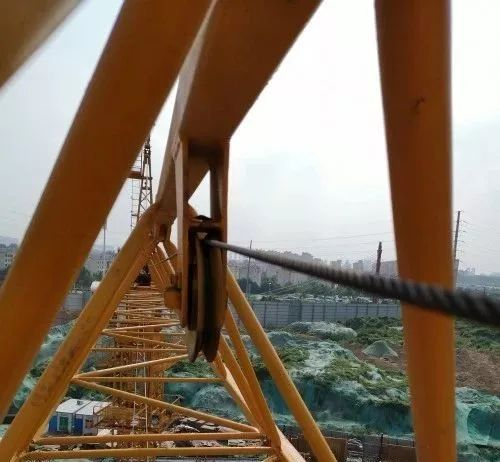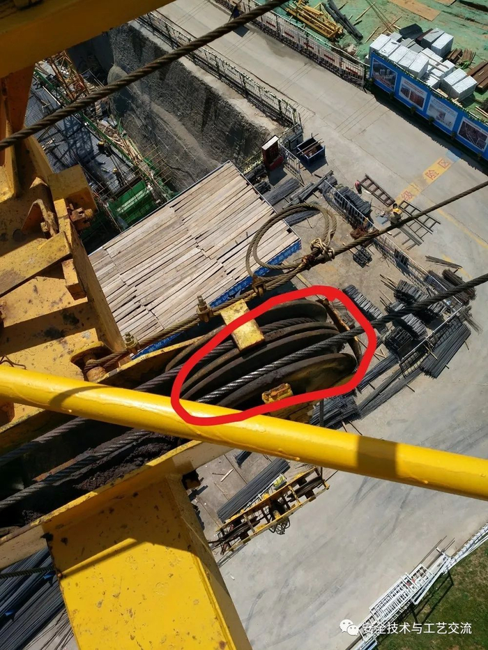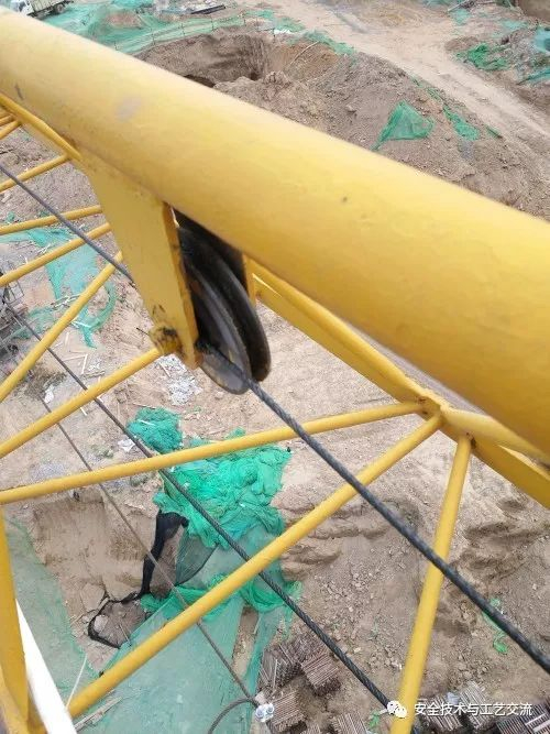 再来看一下小车钢丝绳在大臂上防跳绳设计不合理的情况