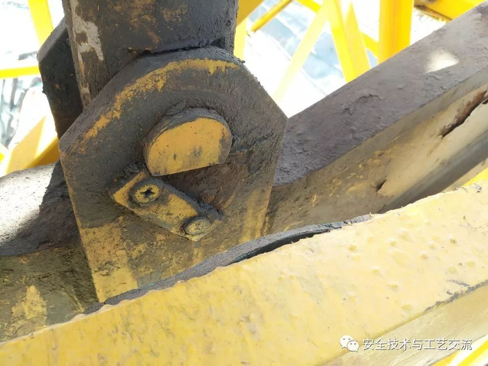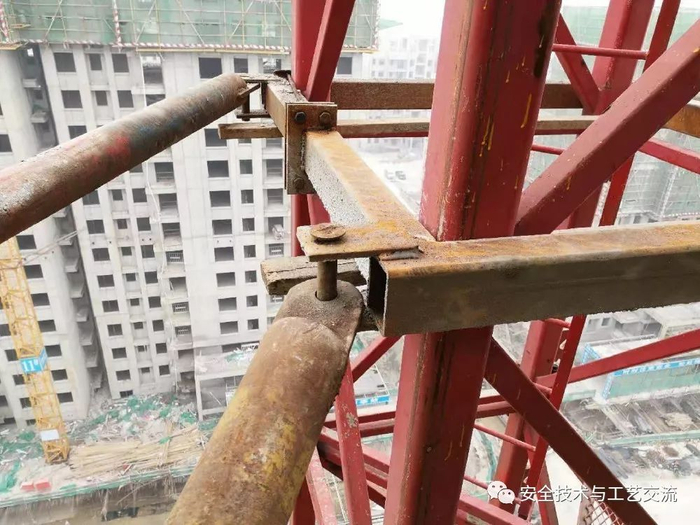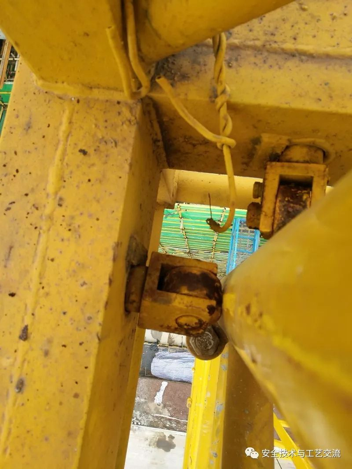 ◆◆销轴、开口销连接,最能体现出一个租赁单位(安装单位水平由租赁单位决定)的服务标准和安全意识一起看看那些不合规吧开口销没有打开或者使用铁丝代替