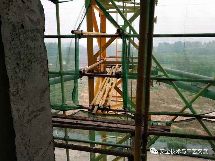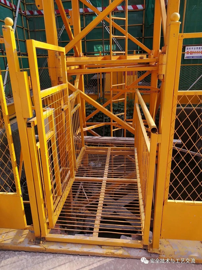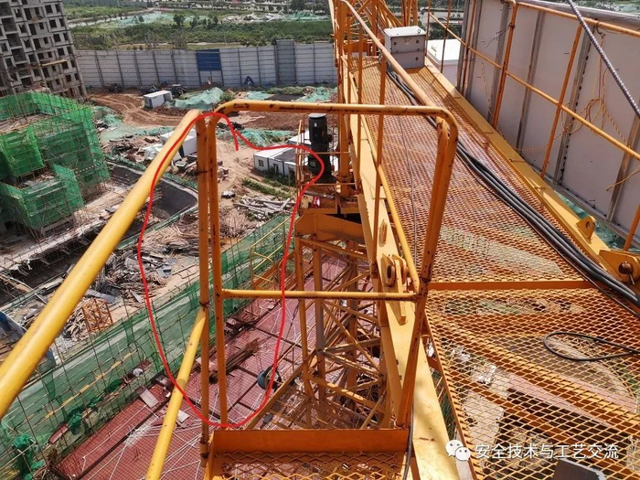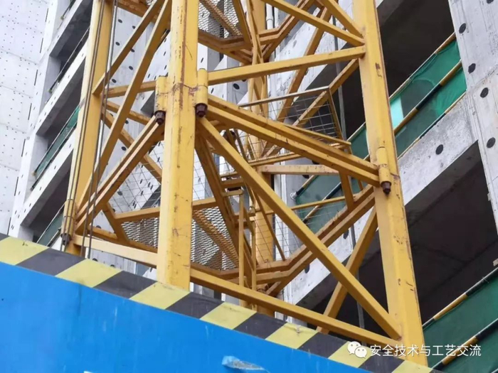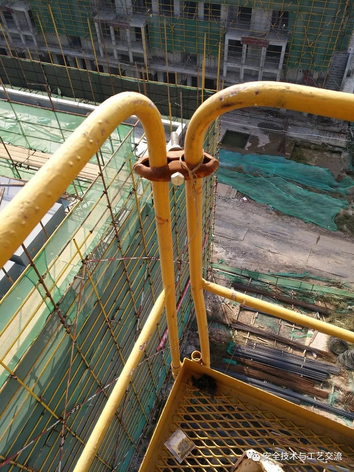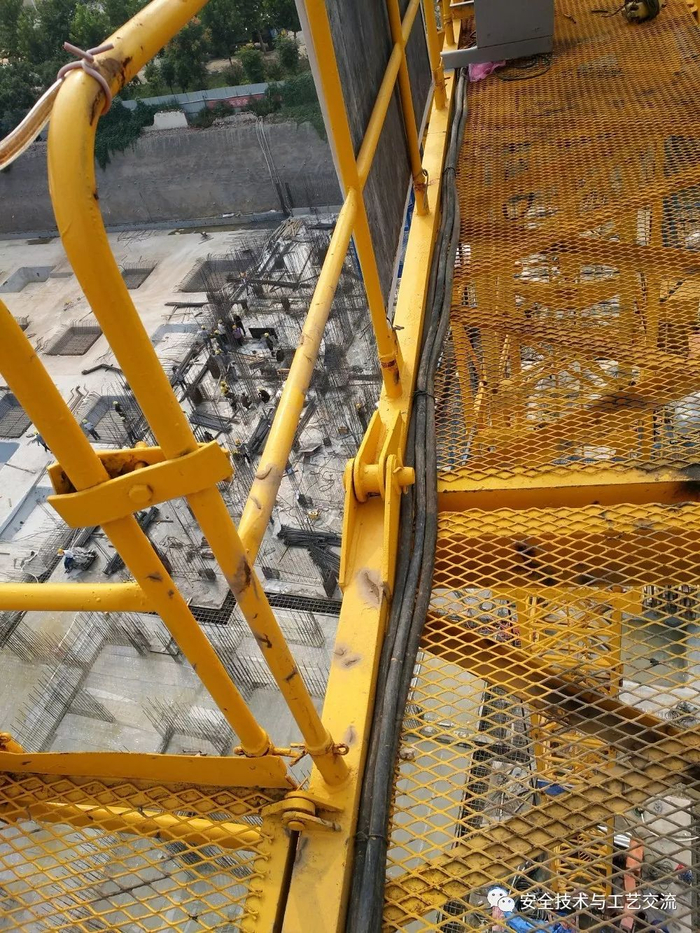 ◆◆防护护栏◆◆建筑内的防护,先不说做法标准与否,很多项目都会注意到。可是设备上的防护,由于大家形成“设备需要专业人员进行维保”的思维,很多危险性更大的防护措施,往往被忽略首先说到的是塔司、维保人员的个人防护问题,之前有篇文章有过详细说明,这里插图一过标准节内张挂安全平网、钢丝网片,防止人员上下坠落,从克服内心恐惧出发解决人员坠落隐患