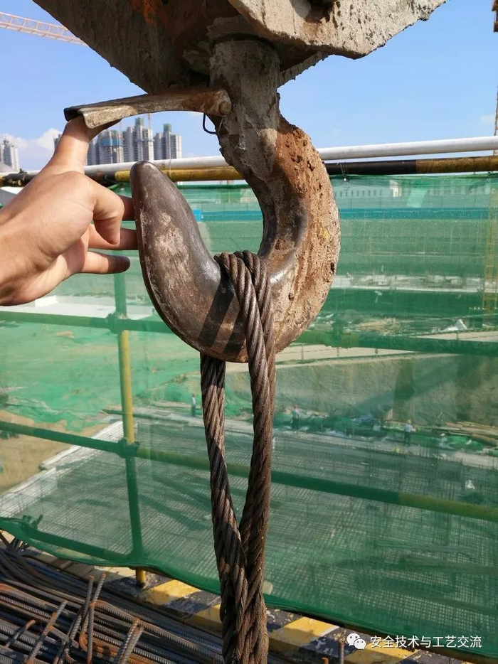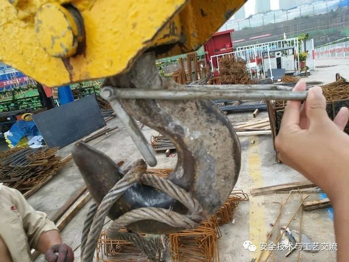 ◆◆钩头保险◆◆以下这几种不能防止大钩钢丝绳跳出来的做法都是不合格的!日常工作中我们不需要上塔吊作业人员、信号工、塔司、管理人员等都可以简单发现这类问题的