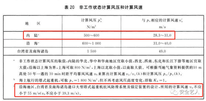内陆的计算风速为28.3~31m/s(10min时距平均风速22.1m/s),相当于9级大风,这种风速在内陆地区极少遇到,郑州地区近三年有记载的最大等级风力也仅在8级左右。而沿海的计算风速则高达55m/s(10min时距平均风速39.3m/s),相当于13级风力,也即是一级台风。所以,塔吊的抗风能力,实际上是远远超过我们想象的,不说沿海多变的气候环境,最起码内陆地区,理论上正常使用,塔吊不会被大风刮倒!然而,2017年上半年一场大风,郑州三台塔吊倒塌。2019年大风吹倒的塔吊更是不计其数,为什么?