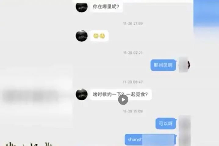 上月底,一名男子在她微博留言:" 小姐姐啥时候一起觅食?" 并表示," 你想吃啥就吃啥。" 随后,双方加了微信。