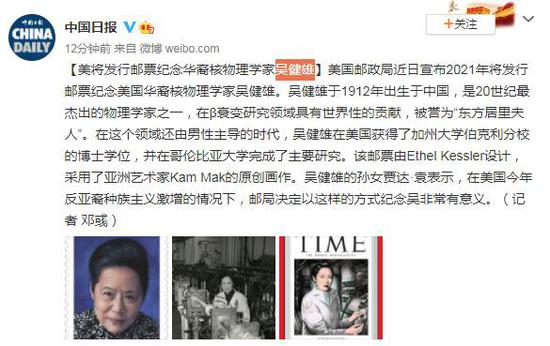美国邮政局近日宣布2021年将发行邮票纪念美国华裔核物理学家吴健雄。吴健雄于1912年出生于中国,是20世纪最杰出的物理学家之一,在β衰变研究领域具有世界性的贡献,被誉为“东方居里夫人”。在这个领域还由男性主导的时代,吴健雄在美国获得了加州大学伯克利分校的博士学位,并在哥伦比亚大学完成了主要研究。该邮票由Ethel Kessler设计,采用了亚洲艺术家Kam Mak的原创画作。吴健雄的孙女贾达·袁表示,在美国今年反亚裔种族主义激增的情况下,邮局决定以这样的方式纪念吴非常有意义。(记者 邓彧)