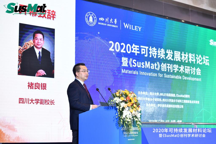 12月6日上午,由四川大学、WILEY出版社集团和《SusMat》期刊共同主办的“2020年可持续发展材料论坛暨《SusMat》创刊学术研讨会”在成都祥宇宾馆举行。中国科学院张清杰院士、陈学思院士、赵东元院士、中国工程院石碧院士、王琪院士,四川省科技厅副厅长陈学华,四川大学副校长褚良银, WILEY出版社集团大中华区总裁Philip Kisray,WILEY出版社集团Physical Sciences 中国区总监徐广臣及300余位专家学者参加了此次论坛。论坛开幕式由《SusMat》期刊执行主编、四川大学高分子研究所张楚虹教授主持。