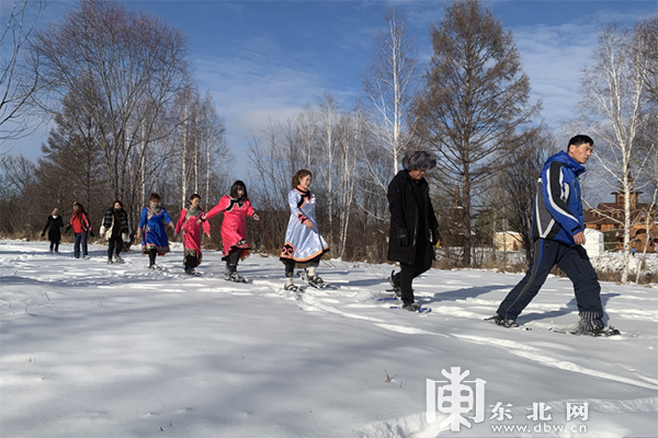 穿着时尚服装和五颜六色雪靴,在大兴安岭冰雪森林中徒步,沿着林业工人的足迹,体验极寒条件下徒步穿越林海的乐趣。