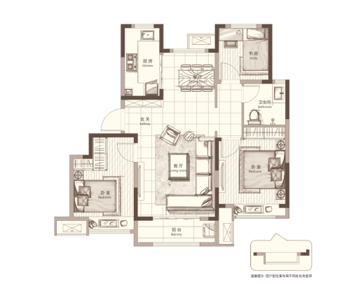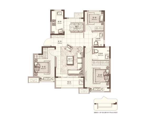 除此之外,丰富的户型配比也是花语拾光的另一大特色。花语拾光目前在售的产品为建筑面积约95㎡、110㎡、125㎡三种户型,均为全明三室的设计、南北通透格局,每一种户型都为置业者提供了相对理想的置业选择,而仅平均20%的低公摊,则是“花小钱办大室”的根本保障,让各个户型更加具有性价比。