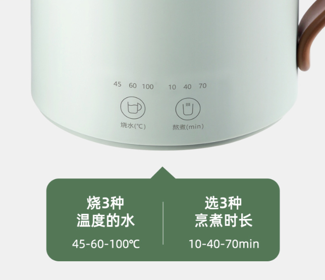 温度有45℃,60℃,100℃可调;烧开一杯水只用7分钟。