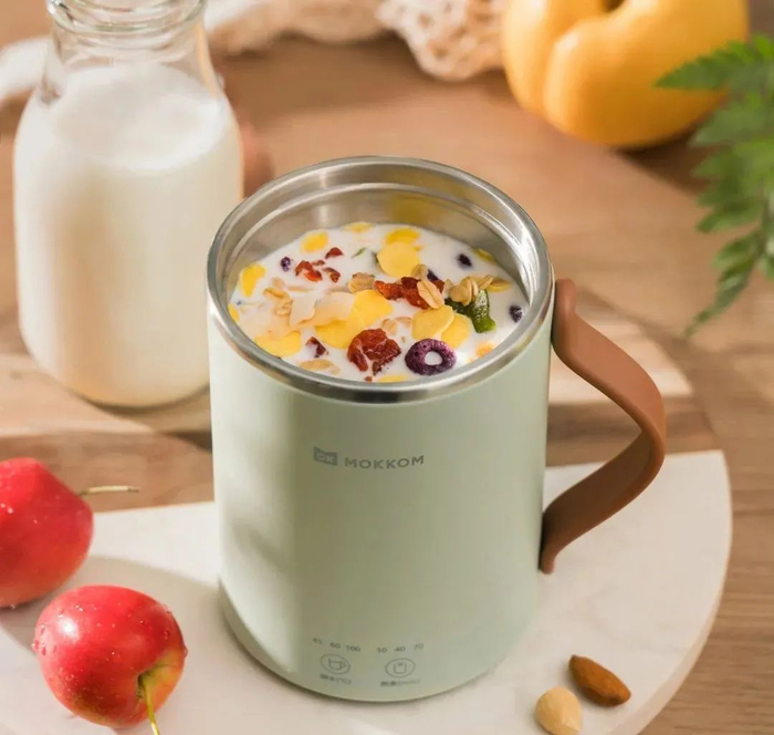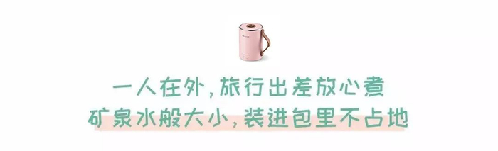 如果带宝宝出门,它比折叠水壶更小巧便携,热奶、熬粥、冲奶粉,都能轻松应对。