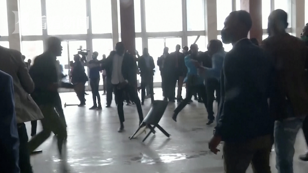视频|刚果金议会厅上演“全武行” 两派议员互扔椅子