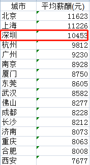 其中深圳的工资中位数为5199元,全国排名第四。
