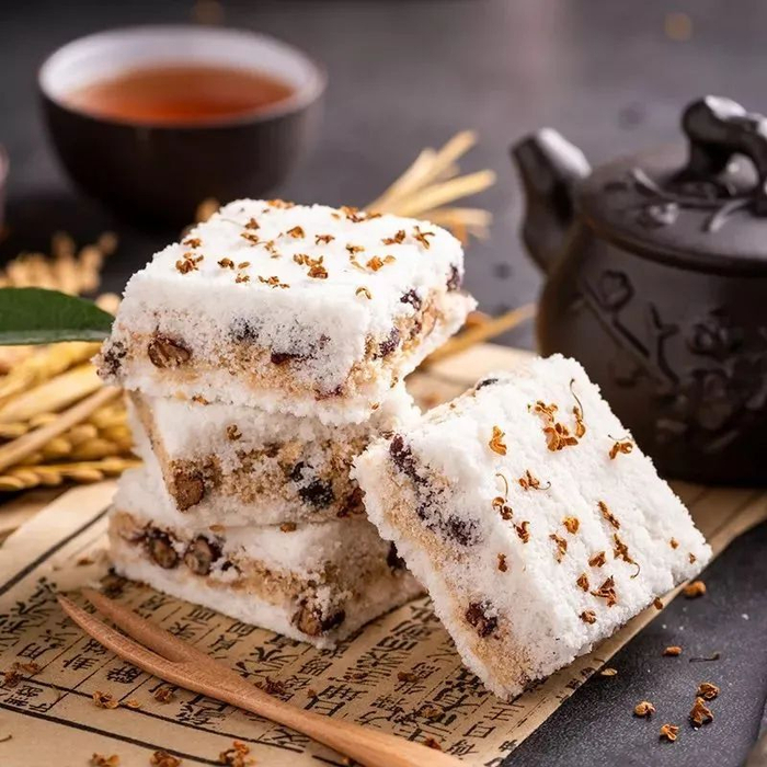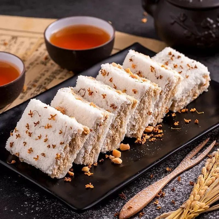 而在众多糕点,令人久久不能忘怀的是温州传统桂花米糕。记忆中是非常具有古早味道的一款糕点。