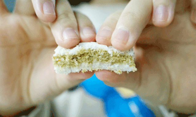红豆味,整体香气会比较“内敛”,闻起来是淡淡的米浆香气。但是一口下去,当你咬到里面的红豆时候,会吃到红豆的慢慢回甘,甜得恰到好处。