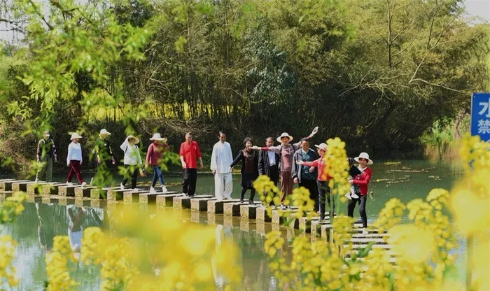 游人在柳岸水乡踏春赏花 图摄/罗兴祥