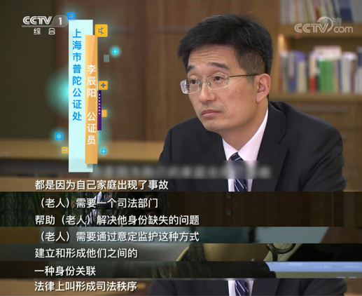 对此,上海市普陀公证处公证员表示,因为自己家庭出现了变故,老人需要司法部门帮助他们解决身份缺失的问题,通过“意定监护”的方式,建立和形成他们之间的一种身份关联,法律上叫形成“司法秩序”。