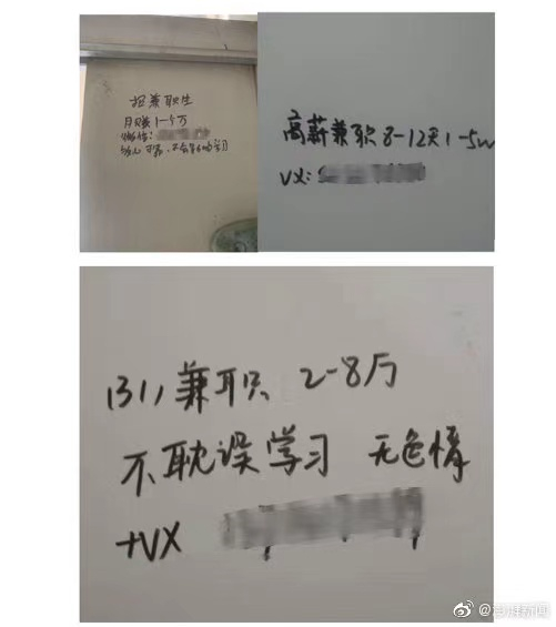 “兼职,2-8万,不耽误学习,无色情”“8-12天,赚1-5万”,类似的“高薪兼职”广告悄然潜进了高校女厕所里。近日,多所高校学生向记者反映,学校女厕所门背后经常出现这类打着“高薪兼职”旗号实则为有偿卖卵的广告。她们感到疑惑:为何卵子买卖的黑手会伸向大学?而自从疫情以来,多数高校均采取了封闭式管理,又是谁留下了这些广告?记者通过调查发现,卖卵的价格与供卵者的身高、长相、学历等挂钩,卖卵行为成了中介口中的“爱心捐卵志愿者项目”,这背后还隐匿着一条“见不得光”的黑色产业链。(澎湃新闻)