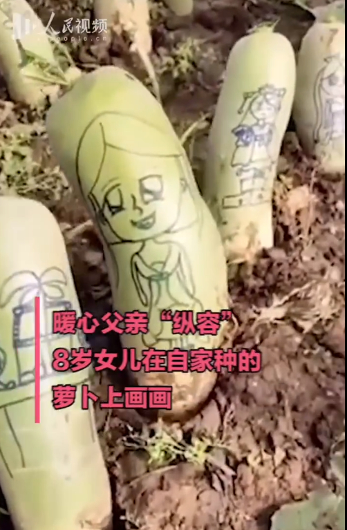 父亲的宠爱!8岁女儿在自家种的萝卜上画画