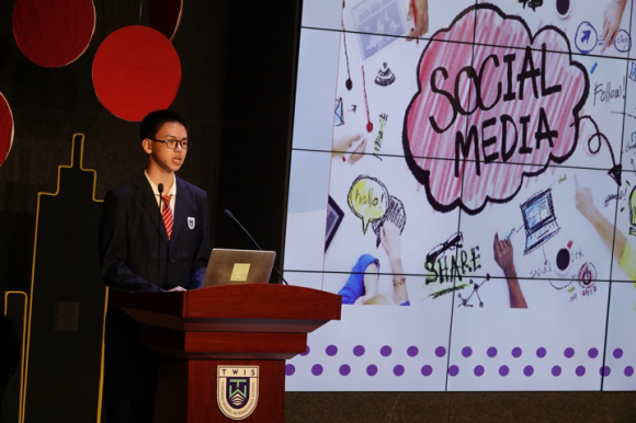 在一次戏剧表演中,七年级和九年级的学生为观众带来了一场关于文学作品《雷雨》的故事新编表演,获得在场所有人的掌声;在一次八年级学生的礼堂演讲中,有的学生从自身学习经历出发,阐述接受全人教育和终身学习的重要性;有的学生分享了体育比赛中的反身性思考;也有的学生反思社交媒体现状,论述如何成为一个良好的沟通者...... 演讲的主题来自IB国际教育体系学习者的十大标准,学生按照自己的理解升华演讲稿主题。
