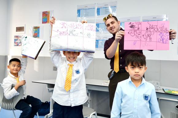 讲故事是一种普遍的技能,几乎适用于生活的每一个领域,我们不必一定要成为作家,才能欣赏一个好故事是如何改变生命的。因此Mr. Ben老师在东华文泽学校开设了“画画讲故事”的英语学习课程,旨在通过引导学生用英语讲述他的连环画故事的方式,帮助学生提高语言组织、听力和口语能力,并用英语展示学生的创造力。