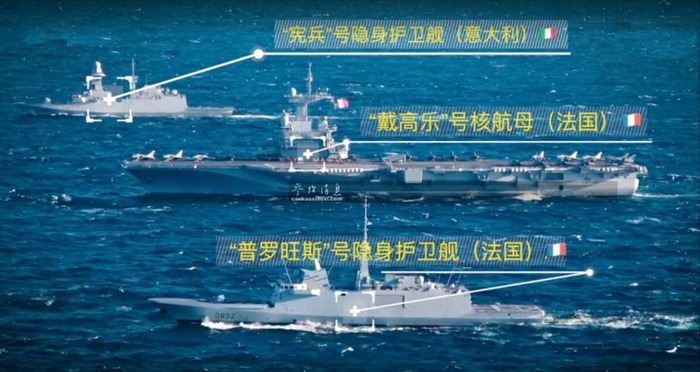 此次军演是法国海军唯一一艘核动力航母“戴高乐”号,完成中期大修后进行的首次海外部署行动。此前“戴高乐”号刚在土伦港附近完成了为时一年半的中期大修和现代化升级。图为“戴高乐”号航母参演及舰载机编队飞行动态图。