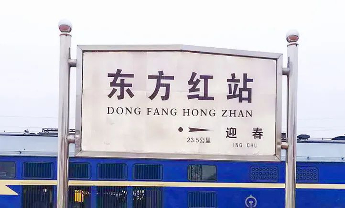 东方红,密东线的尽头。作为中国最东方的火车站之一,东方红站特殊的名字宿命般承载起一种伟大使命,它位于黑龙江省鸡西市虎林市东方红镇,是一个三等站;太阳升站位于黑龙江省大庆市,是一个四等站。