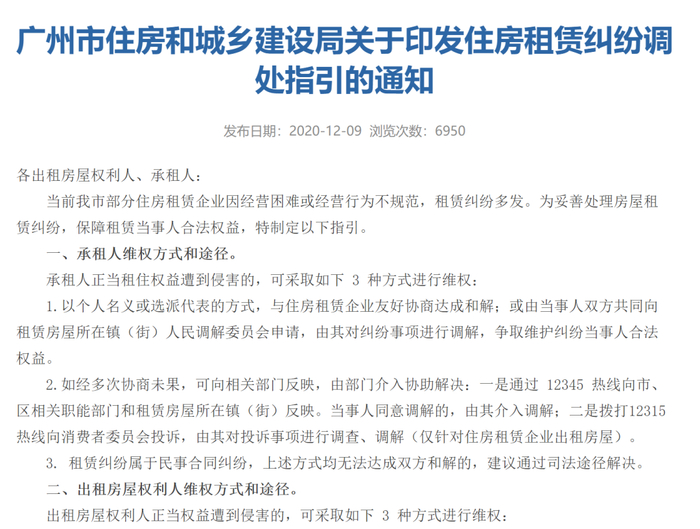 广州市住房和城乡建设局关于印发住房租赁纠纷调处指引的通知
