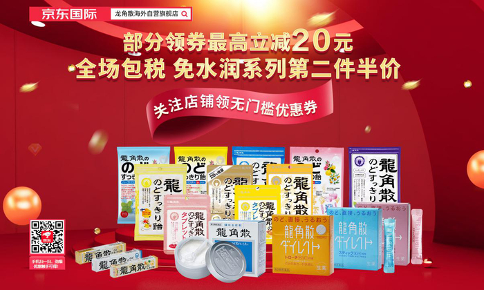 更多优惠活动可登陆天猫龙角散海外旗舰店和京东龙角散海外自营旗舰店了解详情。