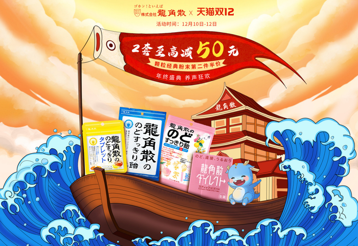 年底购物季,为回馈中国消费者的支持与厚爱,日本百年护嗓品牌龙角散在其电商平台推出了双12系列福利活动。活动期间,用户登录龙角散天猫海外旗舰店及京东龙角散海外自营旗舰店可享受爆款试吃、惊喜折扣等多项福利。