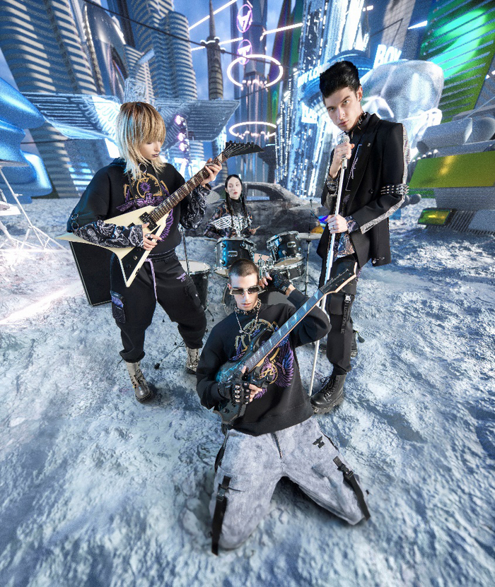 冰川化身恒远静谧的符号,莽地雨林中蛰伏着可物化的时间。飞行器的轰鸣声透穿胶着的大气结构,游走在视线四野投射巨大阴影。摩登和复古交糅同在,未来朋克在银白色系中流向新世代。BOY LONDON 2021春季系列以立体的机械金属质感再次复苏音乐基因,在精准的剪裁结构中,引用网纱、扎染、夜光等元素为媒介,提炼朋克精神的热动脉络,将超时空的先锋意志录入宇宙声场,猎获一切会抵达的未来可能。