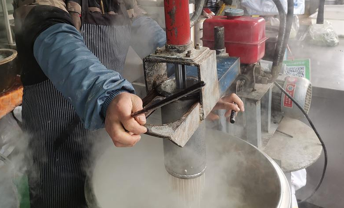 到王涛这一辈,立岗王记饸饹面已经凝结了三代人的奋斗情结。四五十年前,王涛的爷爷带着木制的饸饹床子和泥炉子,往返于立岗镇、金贵镇的集市,摊虽小,但量大便宜,5毛钱一碗,味道正宗,生意一直红红火火。