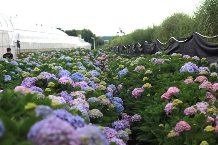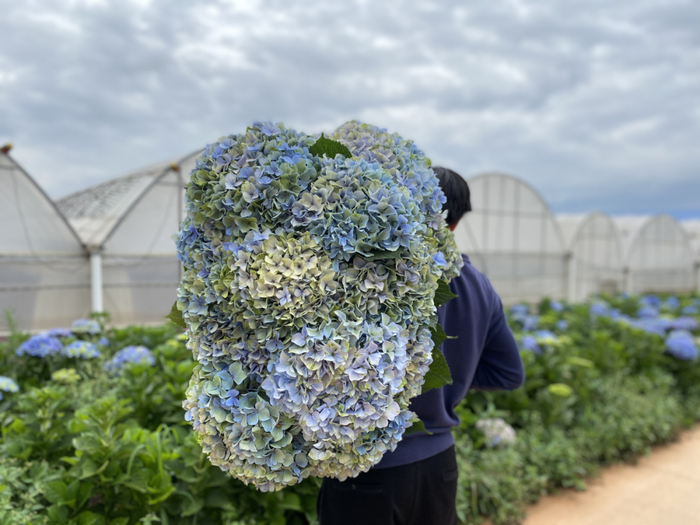 “美如画卷似仙乡”用来形容云上俏花卉基地大概最适合不过了,基地随处可见常年盛放的蓝色、粉色及白色等多种绣球,各种颜色交辉相应,让人应接不暇。