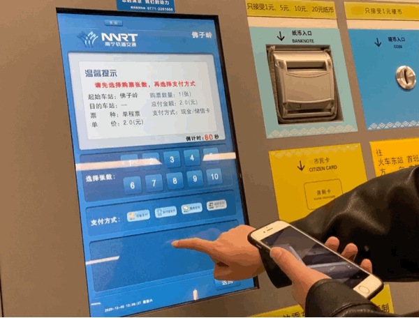 为进一步方便乘客便捷出行,南宁地铁积极创新,继开通蓝牙过闸、APP二维码过闸、全态识别过闸之后,从12月11日起,南宁地铁上线升级自动售票机和半自动售票机二维码支付功能,届时,南宁地铁所有线路均全部支持微信、支付宝二维码购票功能。