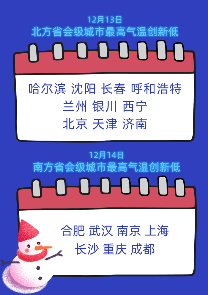中央气象台预计,12月12日08时至12月15日08时,东北地区东部、西北地区东部、内蒙古中西部、华北西部、黄淮大部、江汉、江淮西部、江南中西部、西南地区东部、华南中西部等地大部将先后降温6~8℃。北方有4~6级、阵风7~8级偏北风,南方地区有4~5级偏北风,江河湖面阵风可达6~7级,东部海区有6~8级、阵风9级偏北风。