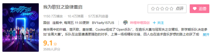《我为歌狂2》B站总播放量超过1150万人次,评分高达9.1分