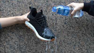 而量橙防水鞋也正是利用了这一原理,把鞋面设计成了双层面料,没有一滴水珠可以逃得过它的“魔爪”。
