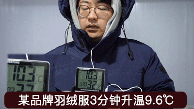 好,接下来,咱们再来试试更牛X的5系抗寒服。这次,我又借了boss的8000元奢侈羽绒服!