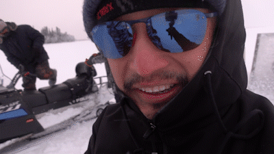 北极风雪非常大!雪地摩托车作为主要交通工具,在北极的寒风中时速40KM/H以上驰骋于冰面,也是北极行中很痛苦的极寒过程。