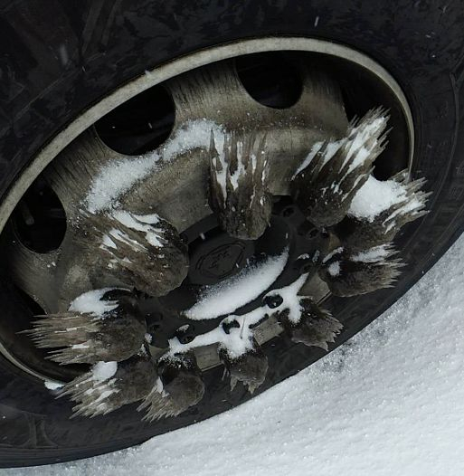 9、如果车辆在下雪天露天停放时间较长,刹车盘和手刹容易上冻,在车辆启动时如果有异响,先不要强行启动车辆,应该检查一下刹车盘是否冻住了,如果冻了可以用木棍敲打轮毂,把冰震开。