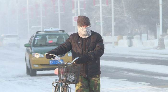 12月13日它再度发威,气温继续下跌。漠河迎来入冬后的首个极寒天气,其中,阿木尔镇最低气温为零下44.3℃,为漠河入冬以来的最低温。极寒天气下,外出的市民纷纷换上最厚的冬装,帽子、口罩、围脖齐上阵。室外制作冰雕雪雕的雕刻师们,也是全副武装抵御严寒。